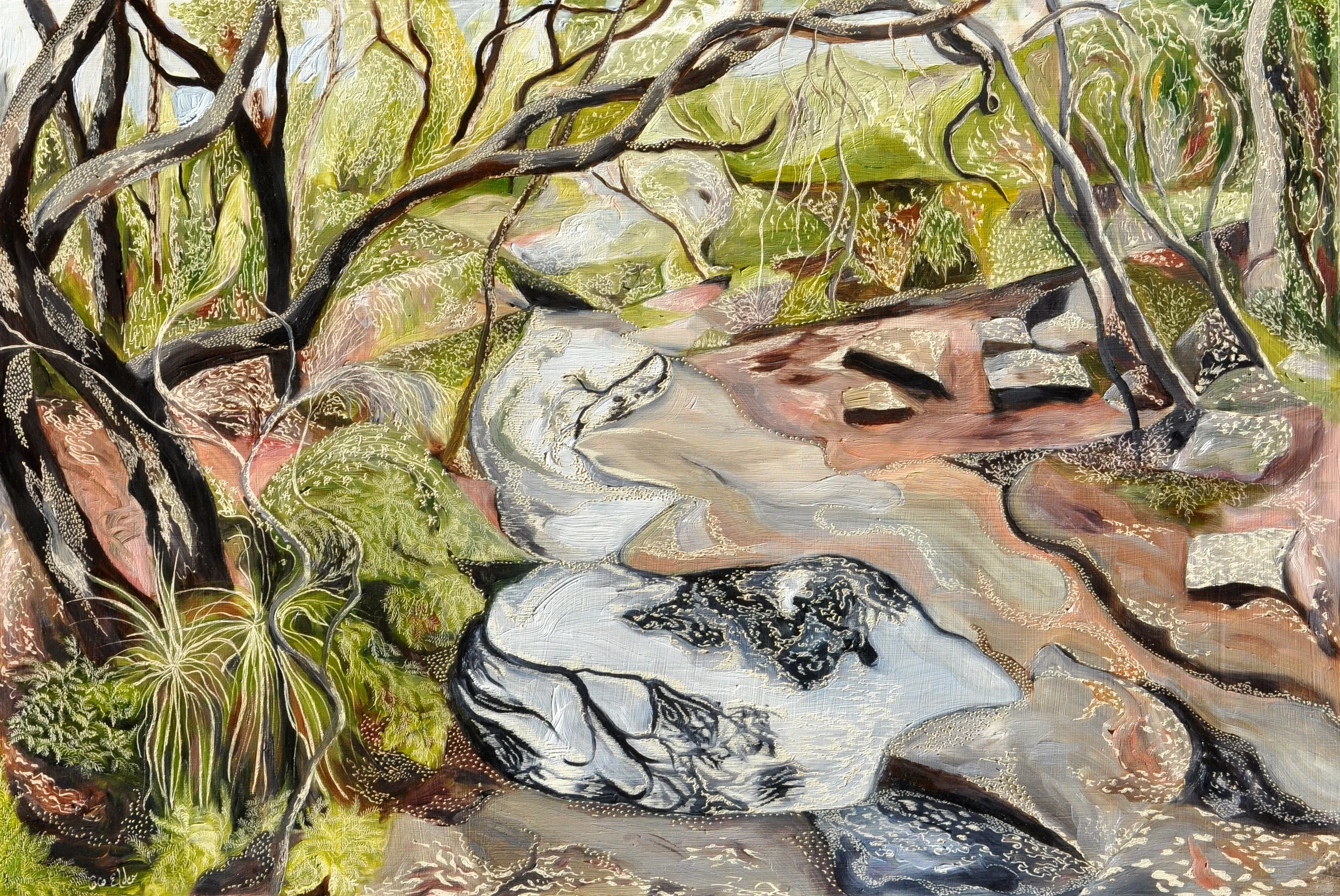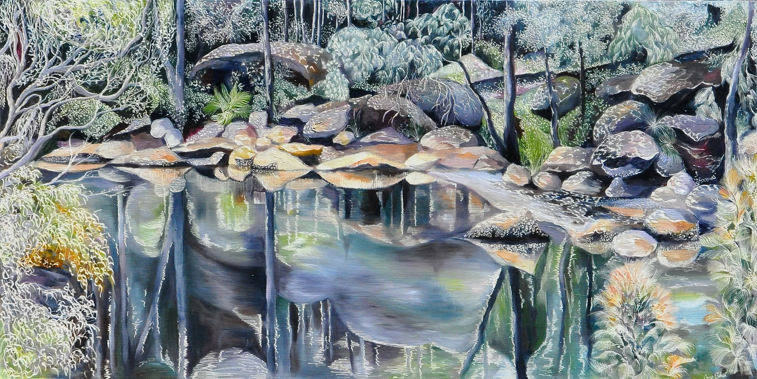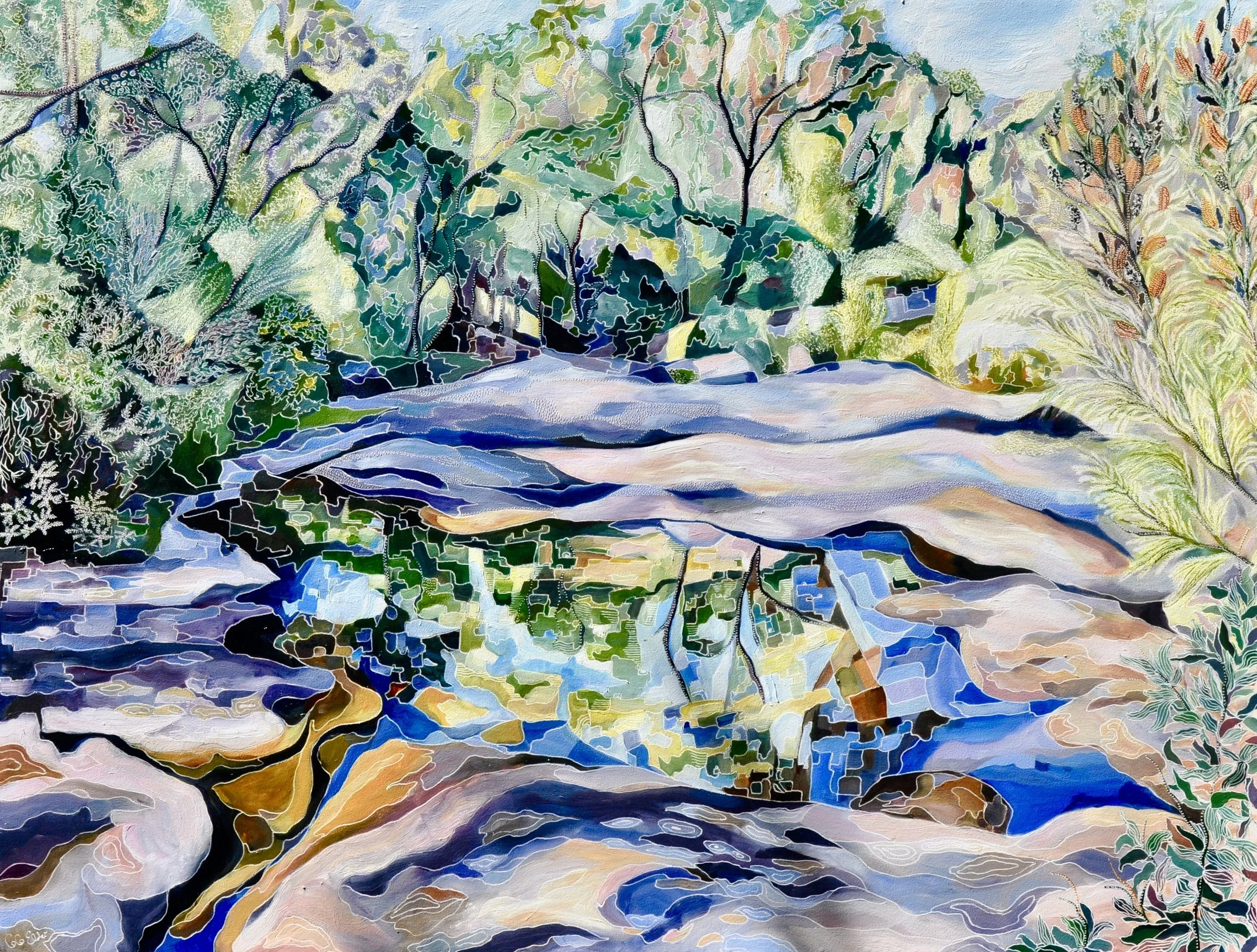 Title: Rippled Reflections of Sydney Sandstone and Acia Ericifolia.